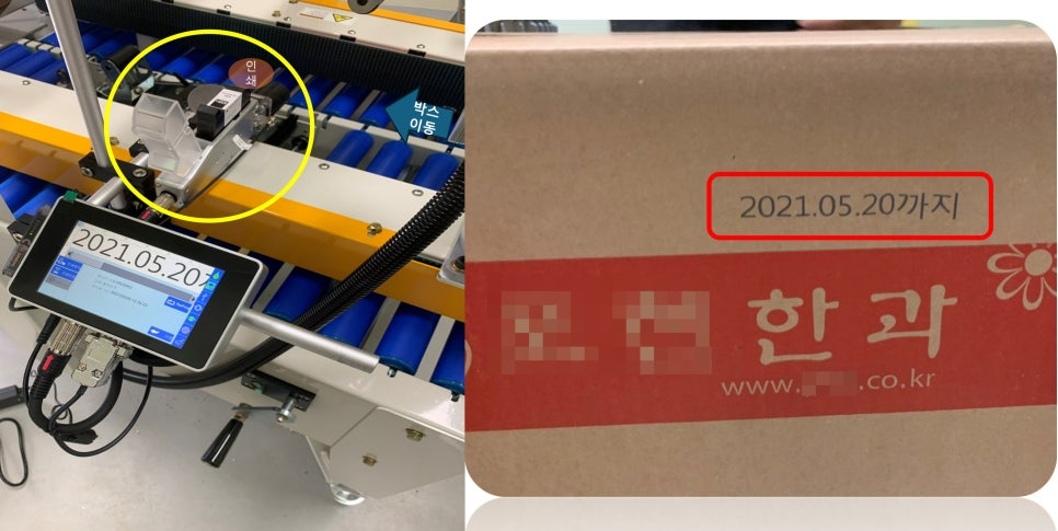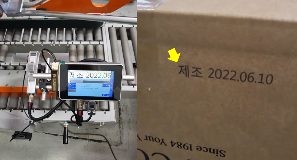 카툰 박스 마킹기, 날짜 마킹기라고도 불리우는 잉크젯마킹기를 설치함으로써