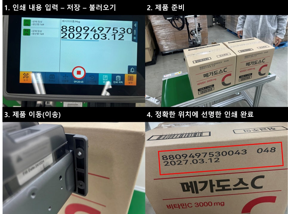 제조 공정에서 제품 식별, 유통기한 표시, 로트 번호 부여 등 다양한 용도로 사용됩니다.