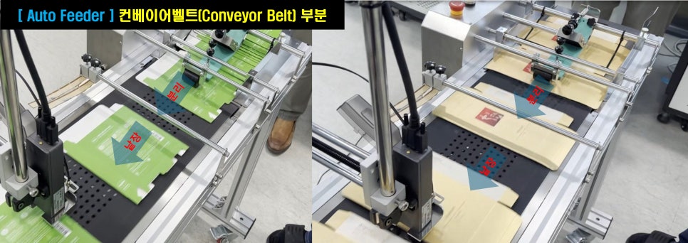 낱장분리장치 피더기는 피더(Feeder) 부분과 컨베이어벨트(Conveyor Belt) 부분으로 구분됩니다.