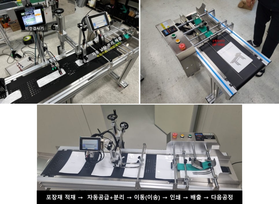 이 장치는 생산 라인에서 다양한 종류의 포장재(파우치, 단상자, 단박스, 비닐포장지, 포대 등)을
