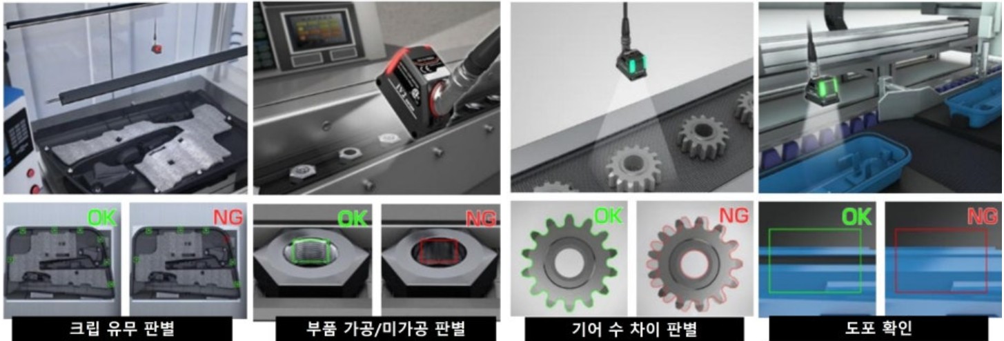 크립유무판별, 부품 가공 미가공 검사, 기어 수차이 판별, 잔여물 검출, 핀 불량 검출, 표기 확인,