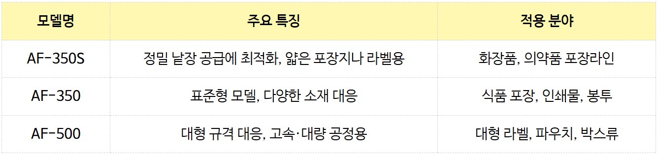 → 모든 모델은 비접촉 센서 제어, 이중공급 방지 기능, 공정별 커스터마이징 지원이 가능합니다.