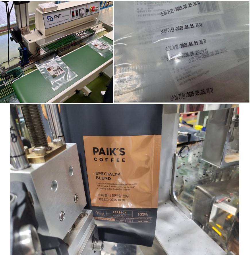 제품이 실링되는 동시에 잉크젯이 자동으로 작동해,