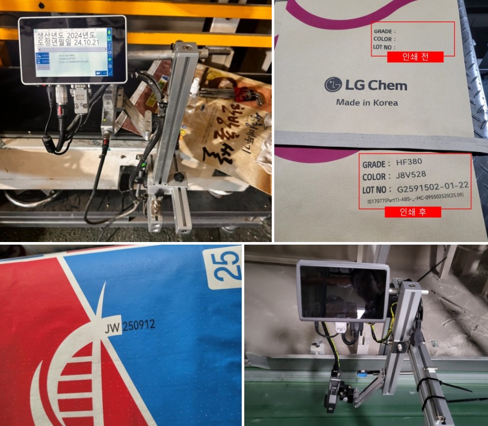 포대 재질(PE, PP)에도 선명한 마킹으로